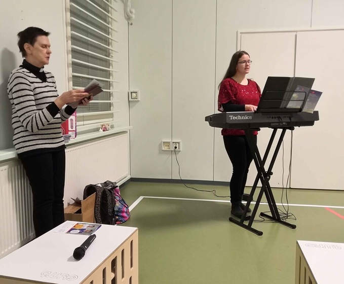 ![]() 22.12.2024 Joululaulut, taustalla kahvi ja gögitarjoilupiste. |