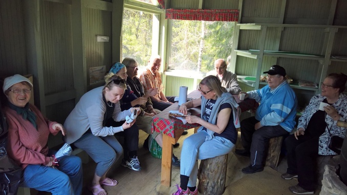 Vasarilla vietettiin kalaisa sunnuntaipäivän hetki. Muikkua oli savustettuna ja keitettynä. Kahvit ja muurinpohjaletut maistuivat myös kylätapahtuman osallistujille.