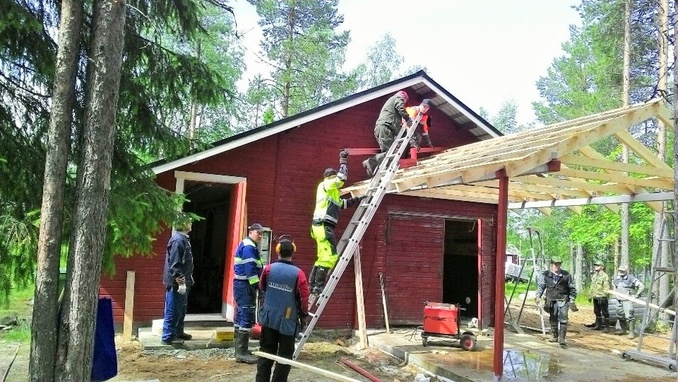 ![]() Hirviliiterin katoksen tekoa 4.7.2015 |